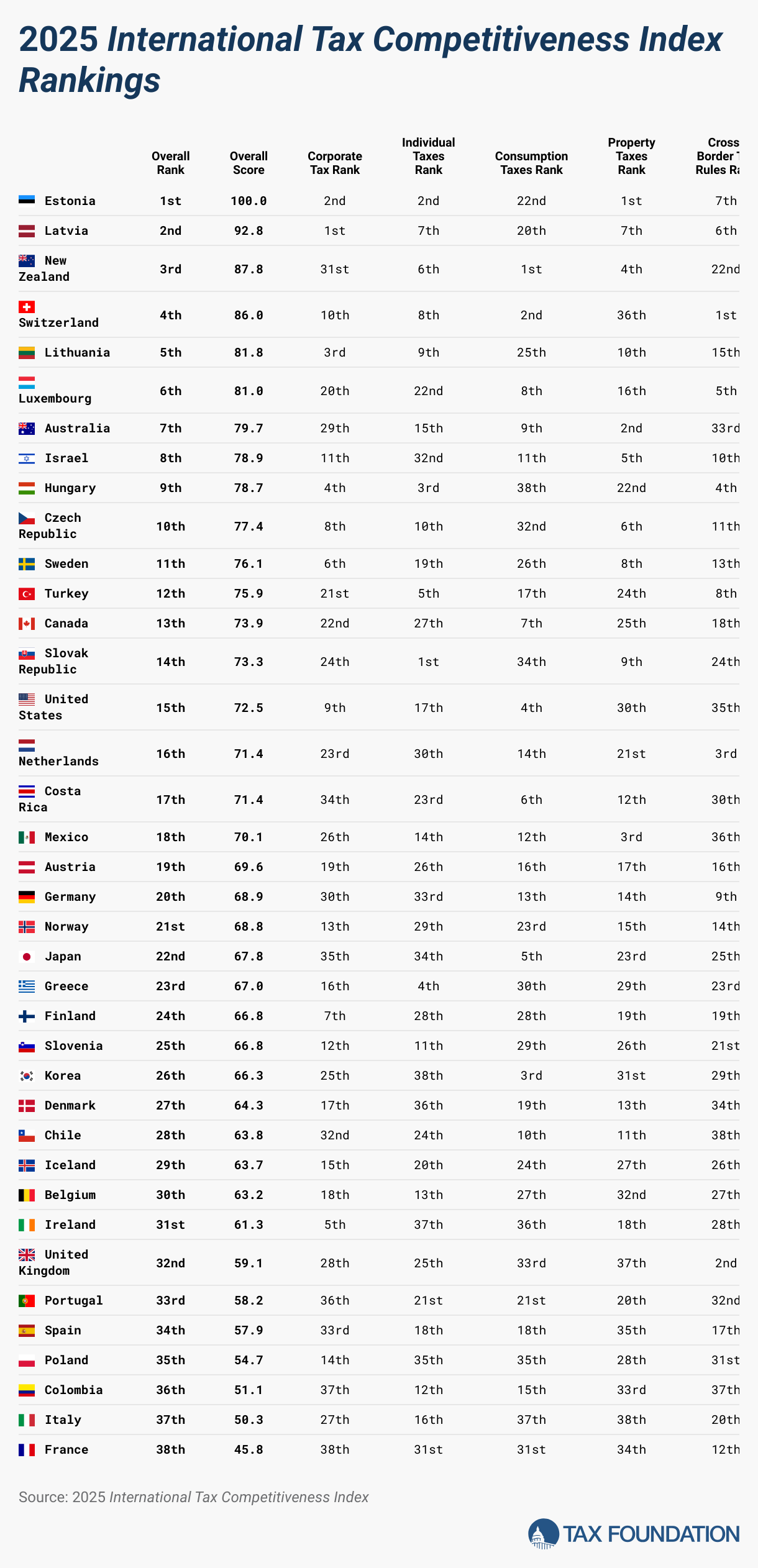 Source : International Tax Competitiveness Index 2025, Tax Foundation.