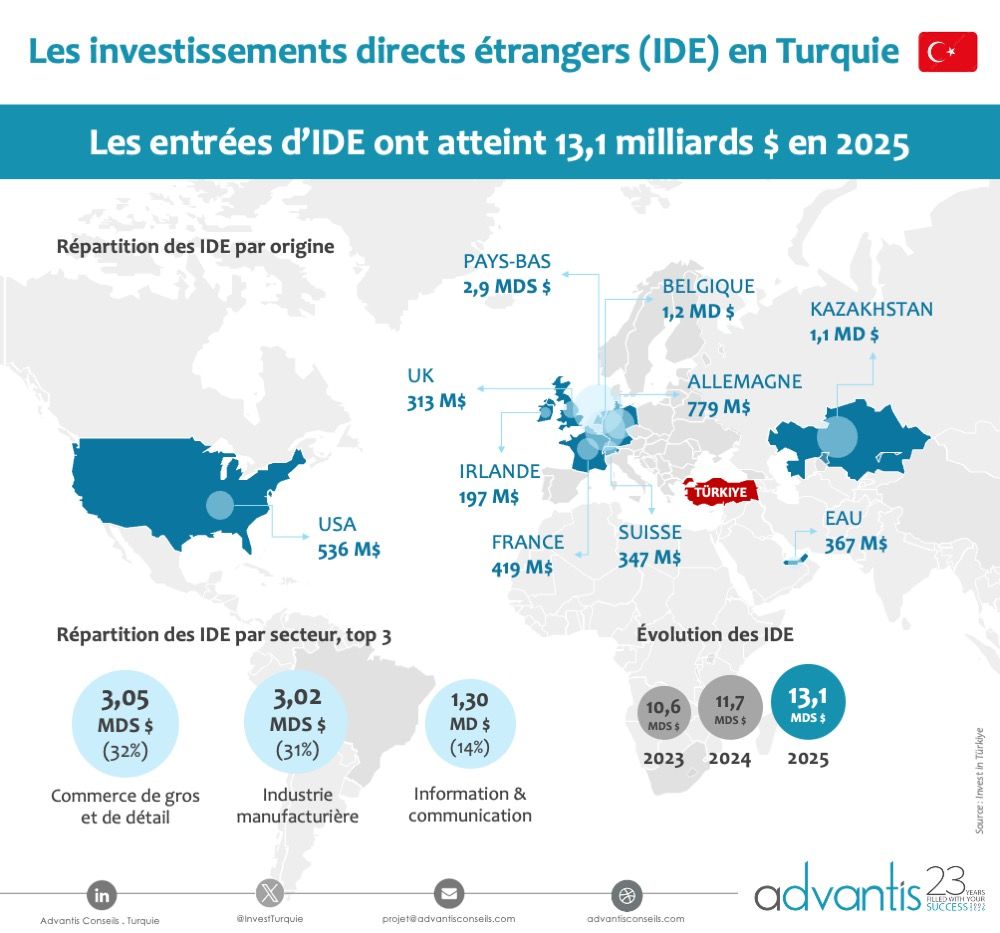 Türkiye attracted USD 13.1 billion in FDI in 2025